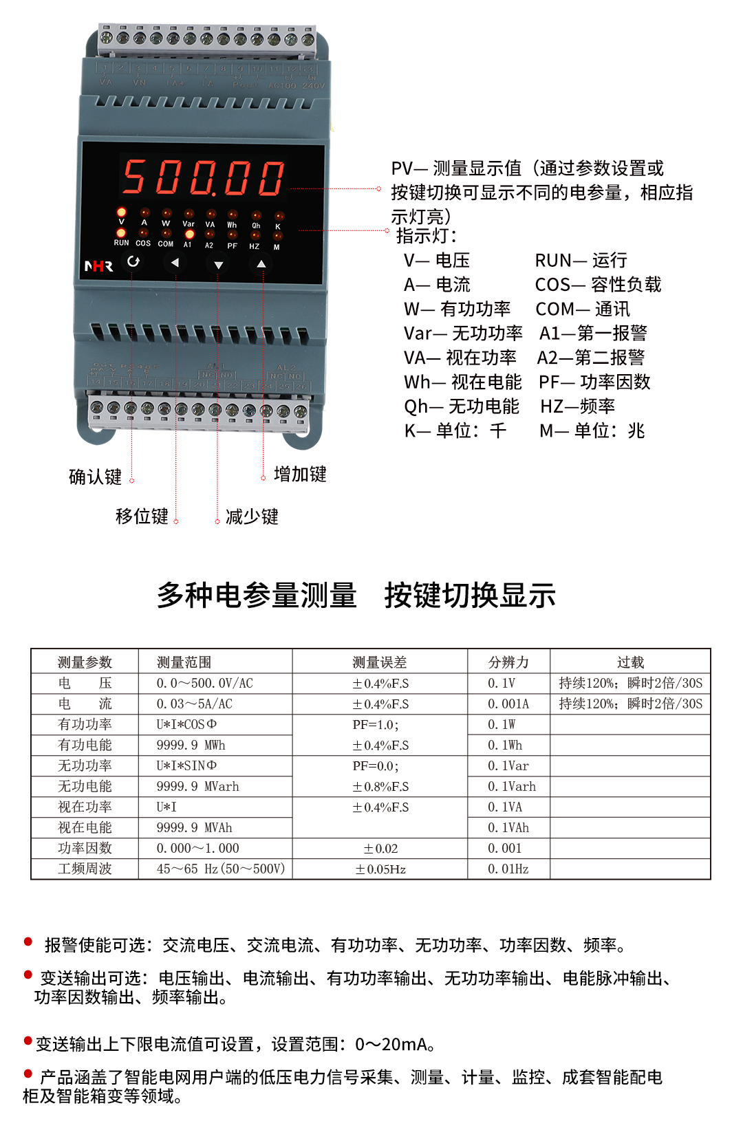 虹潤公司是專業(yè)生產(chǎn)電流傳感器的國家專精特新“小巨人”企業(yè)。生產(chǎn)的單相電量變送器,具有多種電參數(shù)測(cè)量,有功無功電能累積,高抗干擾,導(dǎo)軌壁掛共用, RS485/RS232通訊等特點(diǎn)。產(chǎn)品獲得基于一種交流信號(hào)變送器、交直流信號(hào)轉(zhuǎn)換電路、基于DCS技術(shù)的盤裝式三相電量表等3項(xiàng)國家發(fā)明專利,主持起草工業(yè)過程控制系統(tǒng)用模擬輸入兩位或多位輸出儀表國家標(biāo)準(zhǔn),直流漏電流傳感器規(guī)范、通信系統(tǒng)多通道數(shù)據(jù)采集控制終端規(guī)范等2項(xiàng)軍用標(biāo)準(zhǔn),以及現(xiàn)場設(shè)備集成等5項(xiàng)智能制造國家標(biāo)準(zhǔn),參與國際5G標(biāo)準(zhǔn)制定,取得單相電量儀表等2項(xiàng)相關(guān)軟件著作權(quán)。產(chǎn)品廣泛應(yīng)用于電力、冶金、化工、水泥、造紙、新能源、基礎(chǔ)設(shè)施等用電密集行業(yè)。